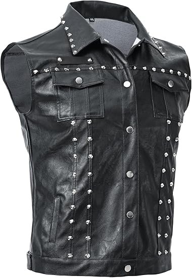 Men’s Black Studded Faux Leather Sleeveless Biker Vest