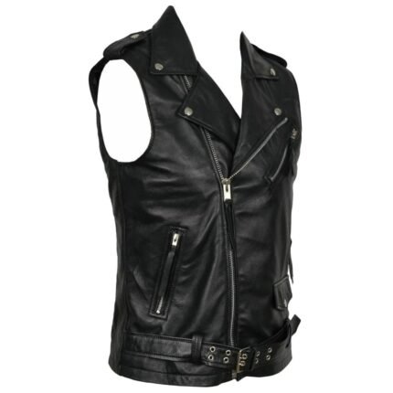Crafted from 100% genuine cowhide, this Men’s Black Western Sleeveless Leather Vest combines rugged durability with timeless style for casual wear or riding.