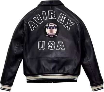 The Cooper Black Leather Varsity Jacket combines genuine leather with rib-knit details, offering a sleek, durable, and timeless sporty look.