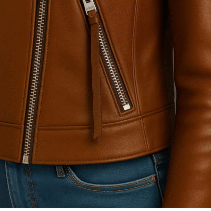 Customized women’s lambskin leather cropped jacket, inspired by celebrity fashion, offering a sleek, stylish, and luxurious look with lasting comfort.