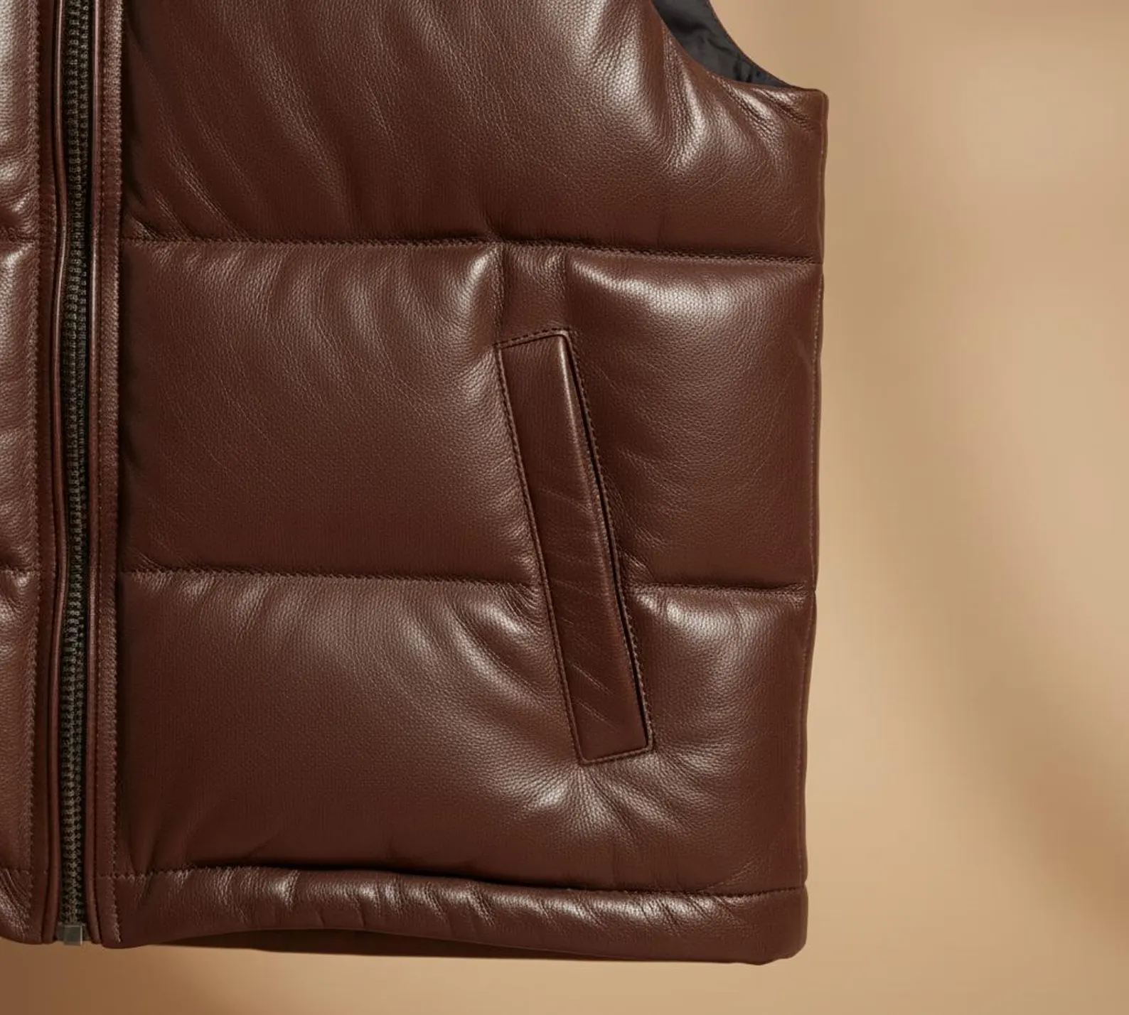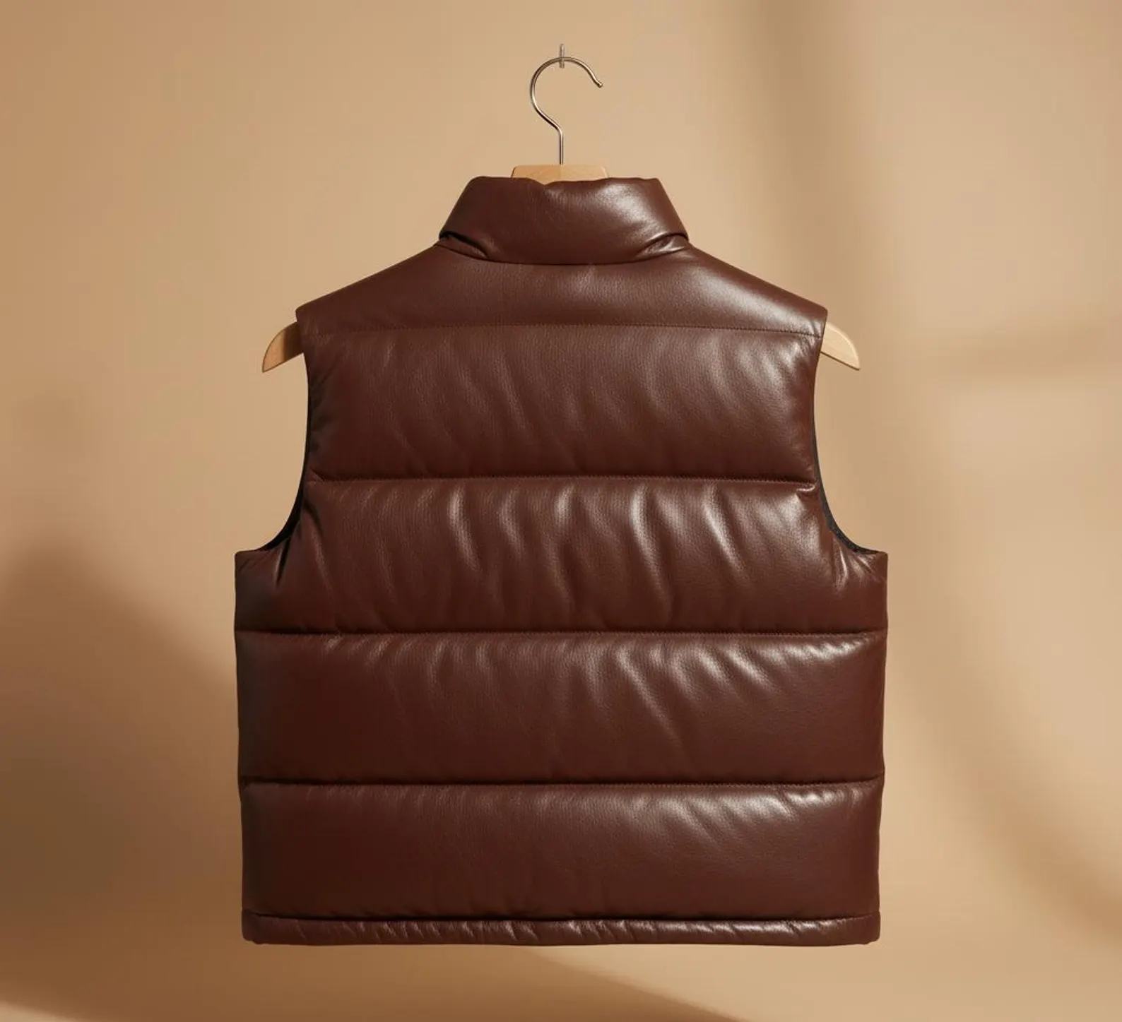 Men’s deep brown leather quilted vest – lightweight, warm, and perfect for casual winter layering with premium leather craftsmanship.