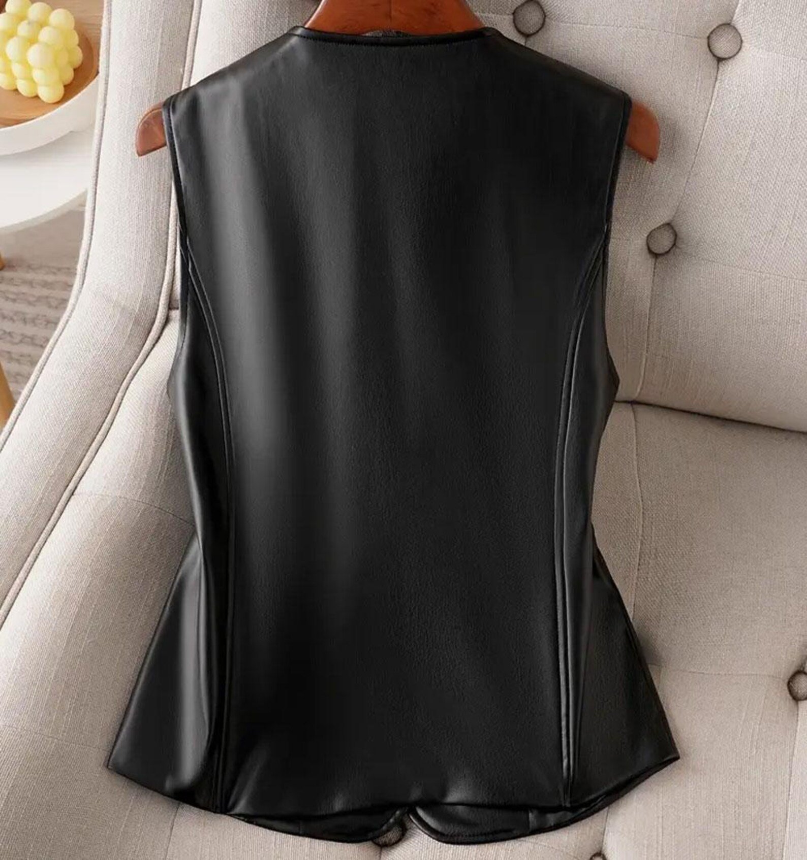 Handmade Black Leather Motorcycle Vest for Women