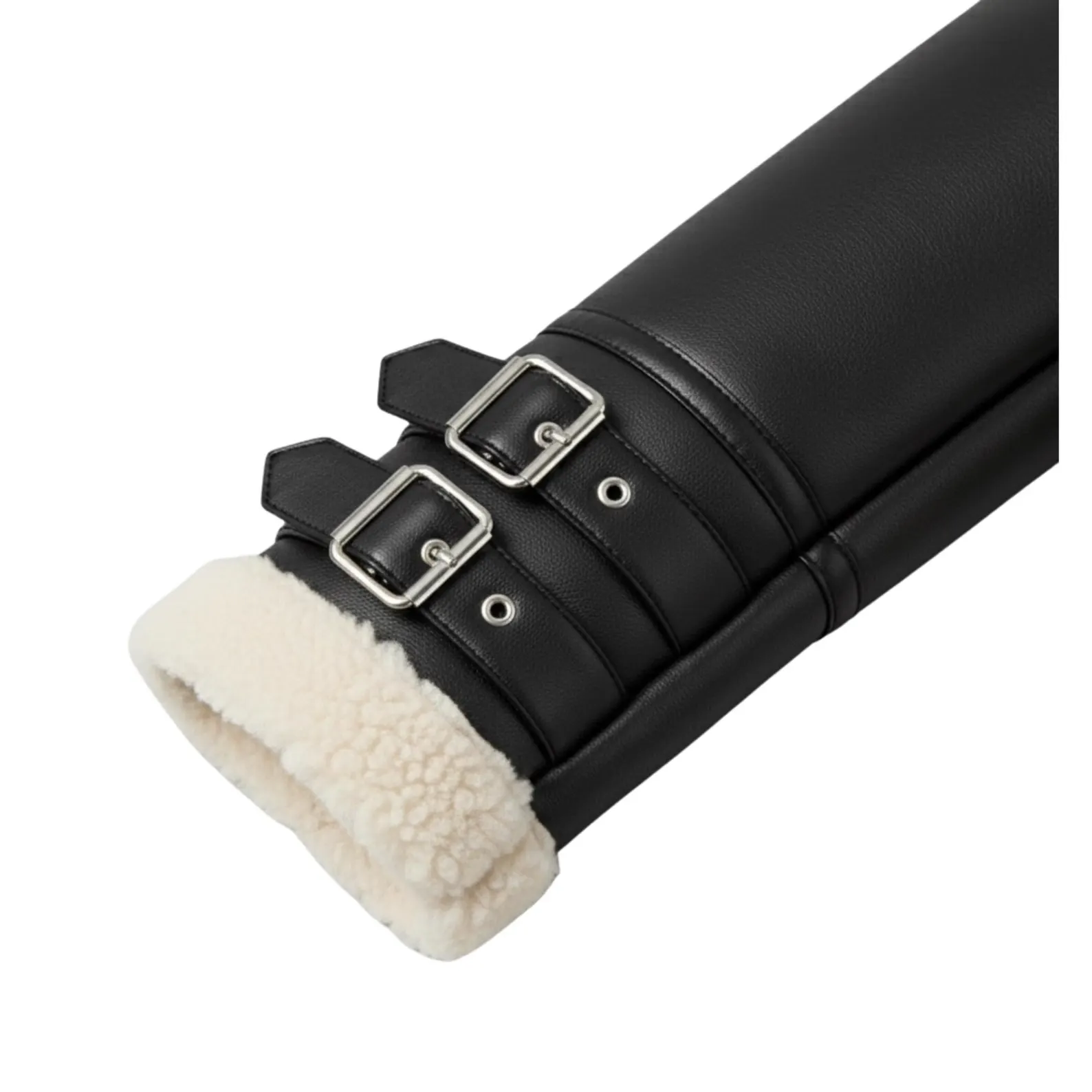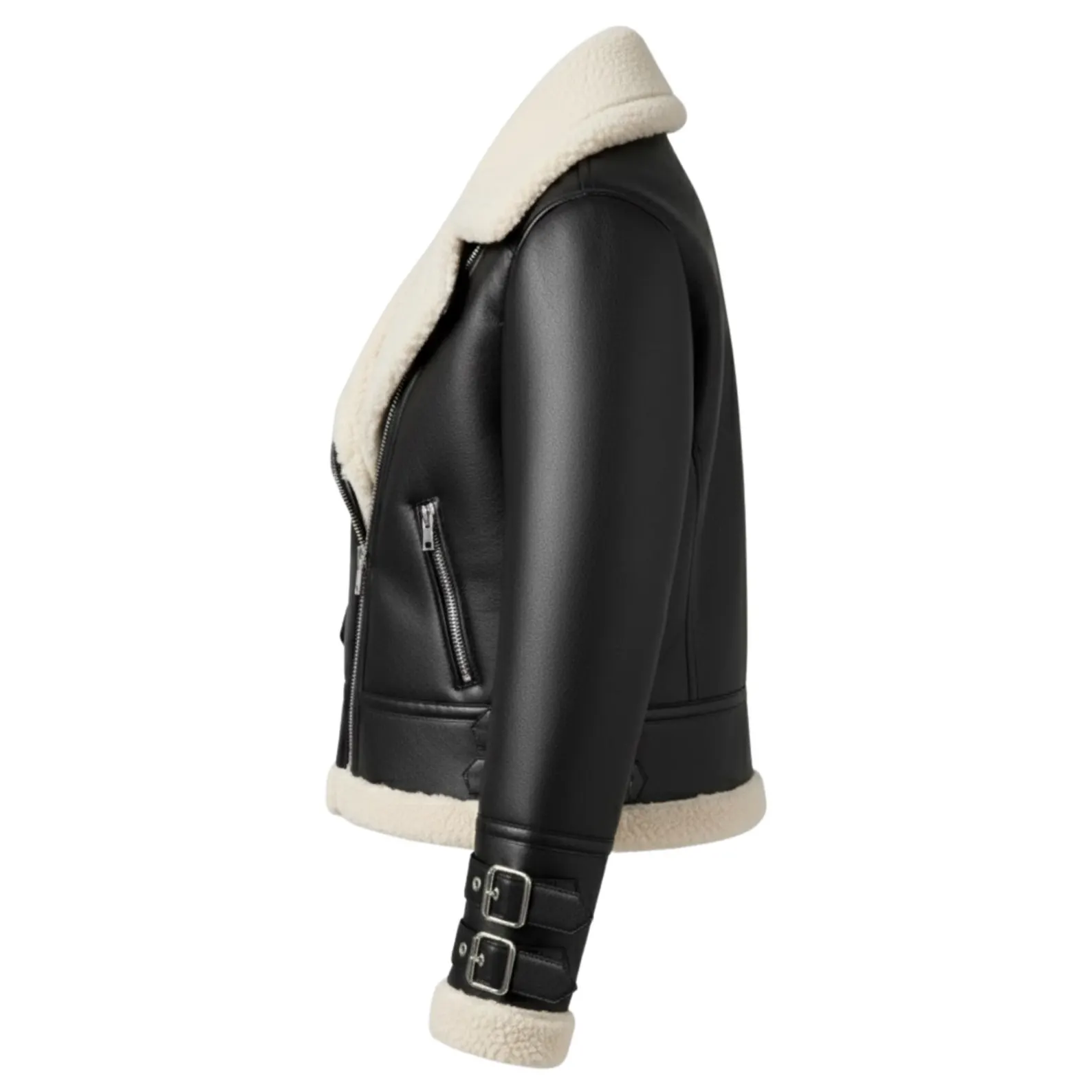 -Fully lined with ultra-soft cream shearling (collar, cuffs, and hem)