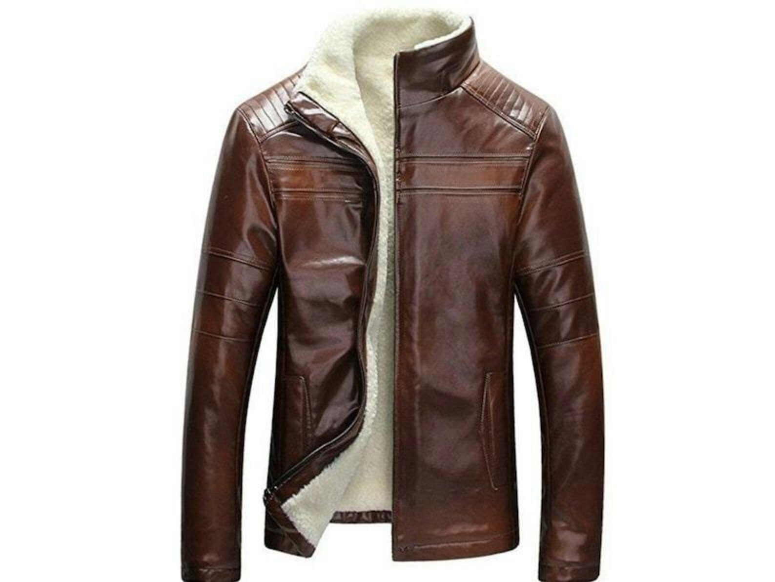 Designed with a classic bomber silhouette, it features a sturdy front zipper closure, adjustable cuffs, and multiple functional pockets for practicality. The shearling collar adds an iconic aviator charm and extra warmth, making it ideal for both casual outings and adventurous days.