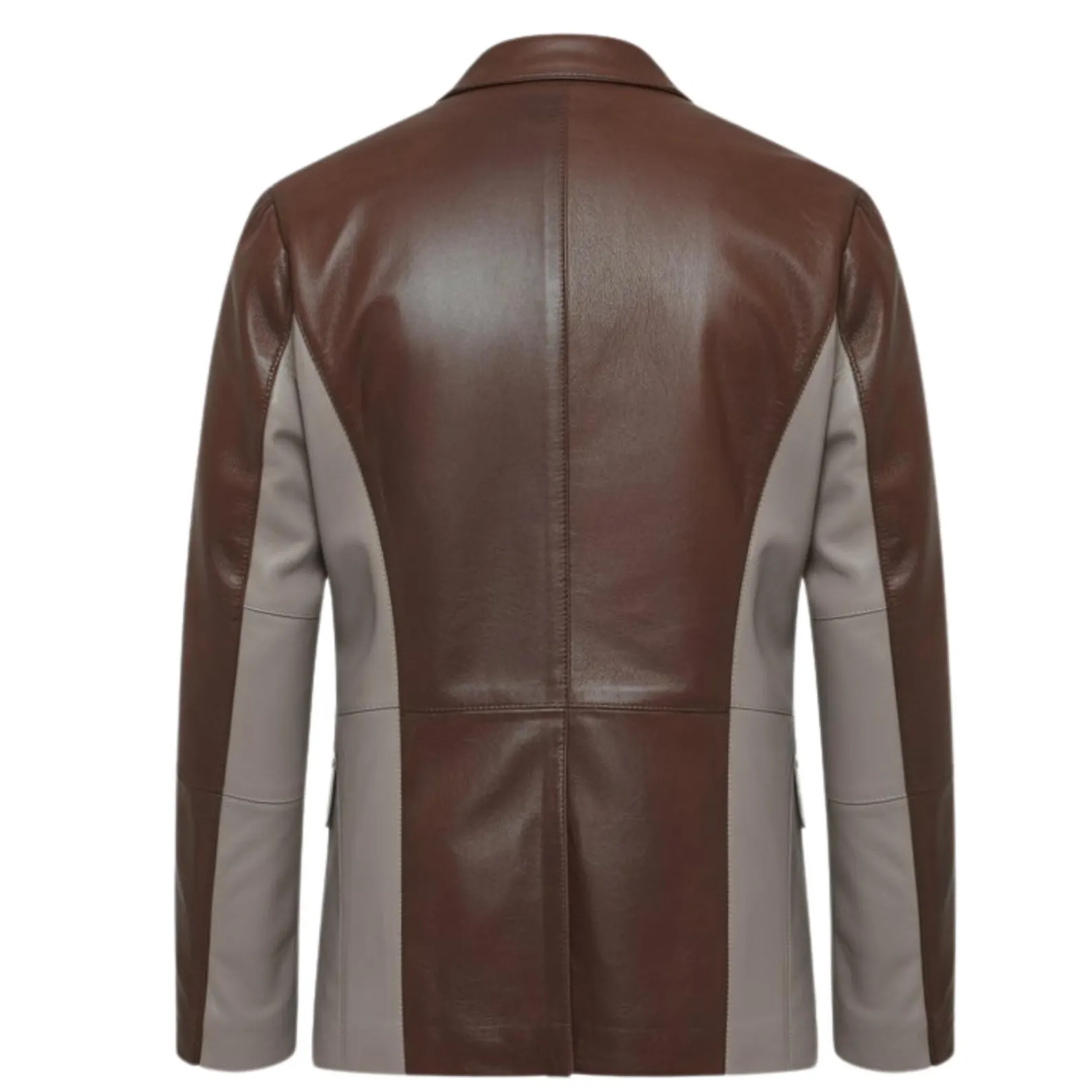 Handmade Two Tone Sheepskin Leather Blazer Men’s Grey Brown Coat