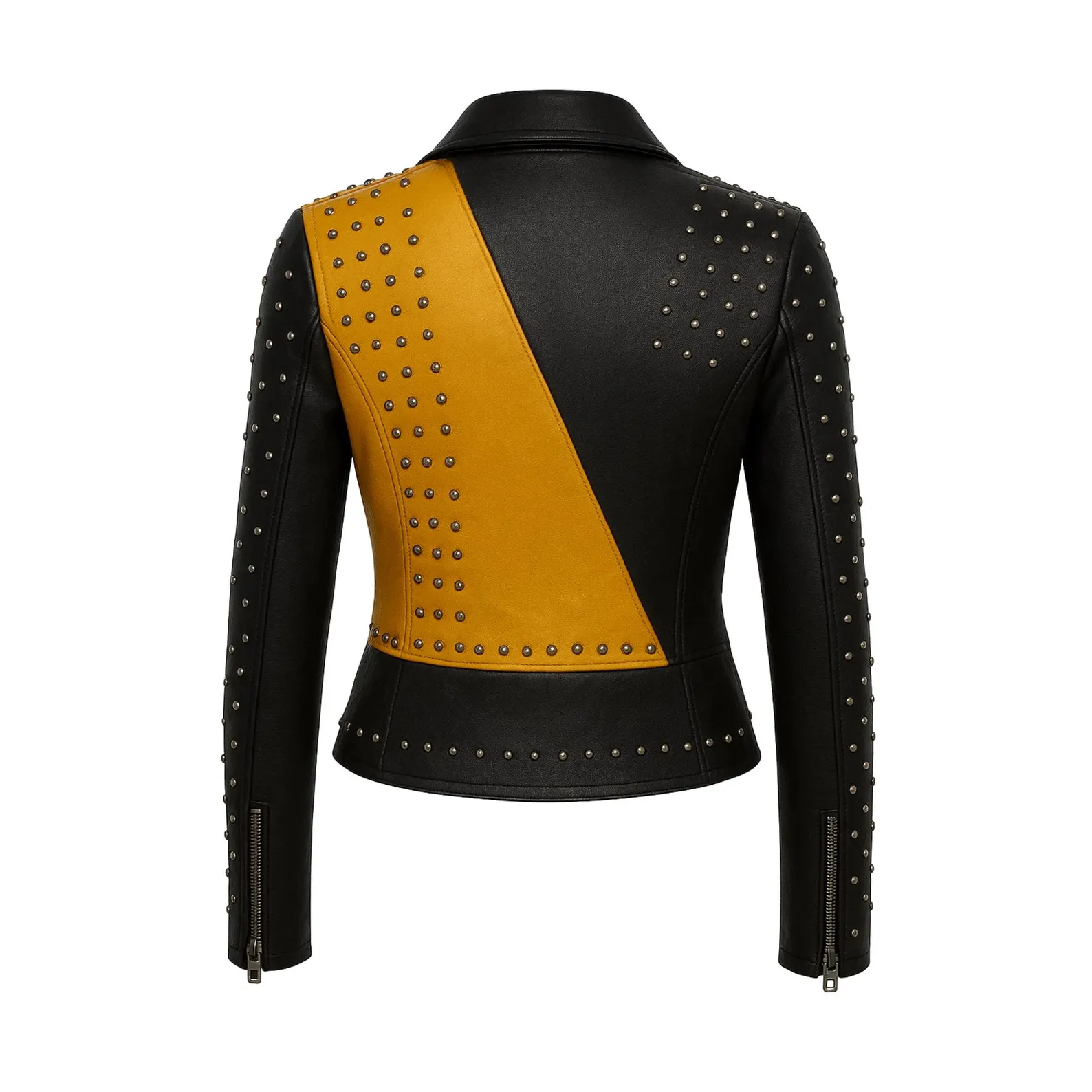 Be the first to review “Handmade Yellow & Black Studded Cowhide Biker Jacket”