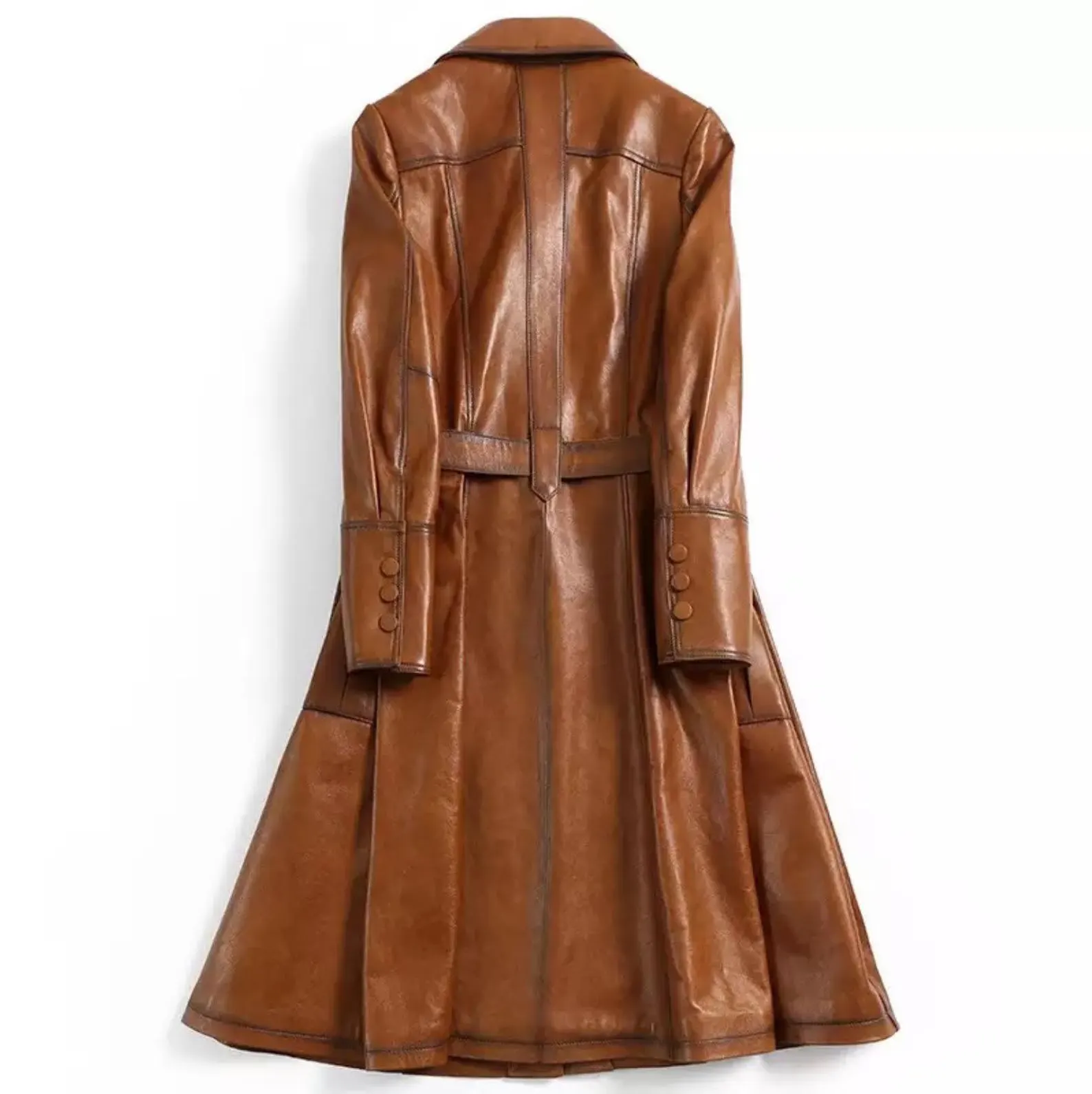Italian Trench Coat Womens Handmade Cut Tan Leather Long Jacket, a masterpiece of timeless sophistication and artisanal craftsmanship. Made from premium Italian leather, this coat features a sleek tan finish that exudes understated elegance. The long silhouette and tailored cut flatter every figure, while the soft, supple texture ensures both comfort and luxury. Designed for women who appreciate classic European fashion with a modern touch, it’s perfect for formal outings or stylish everyday wear.