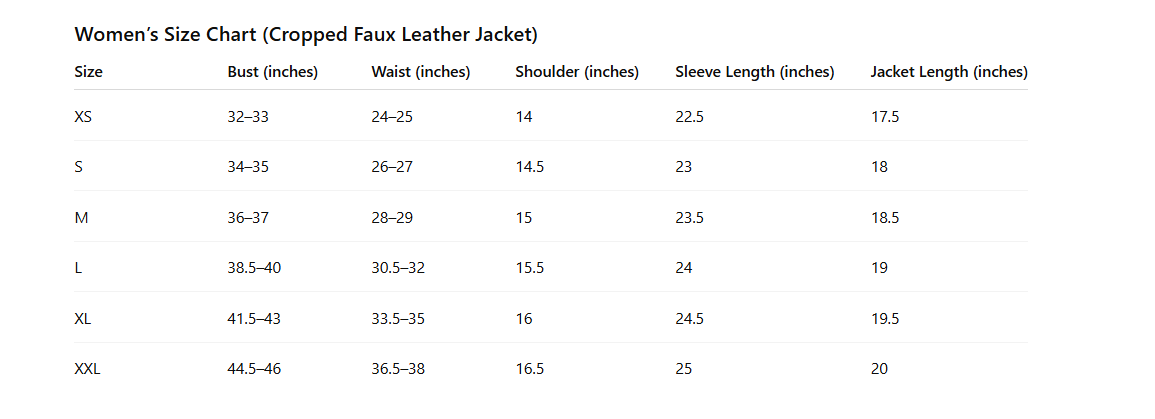 Leather Jacket Cropped Jacket Motorcycle Jacket