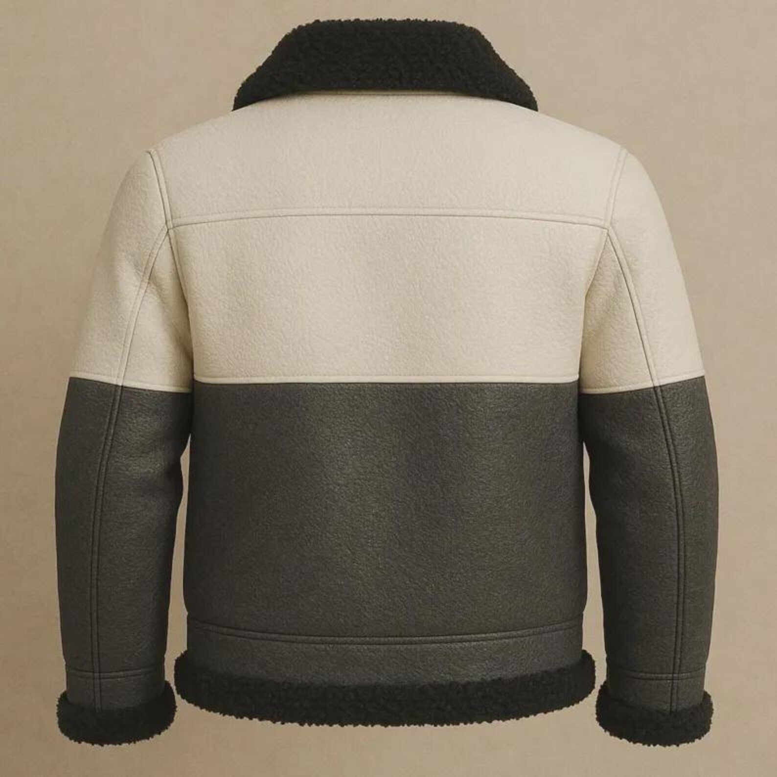 Men’s Black and White Shearling Leather Aviator Jacket, a stunning fusion of classic aviator heritage and contemporary design. Crafted from genuine sheepskin leather, this two-tone bomber coat showcases a striking contrast between the black and white panels, offering a sophisticated and modern edge. The plush black shearling lining ensures exceptional warmth and comfort, while the soft leather exterior delivers durability and timeless style. With its front zip closure, dual chest flap pockets, and turn-down shearling collar, this jacket perfectly balances function and fashion — ideal for winter outings, travel, or casual wear.