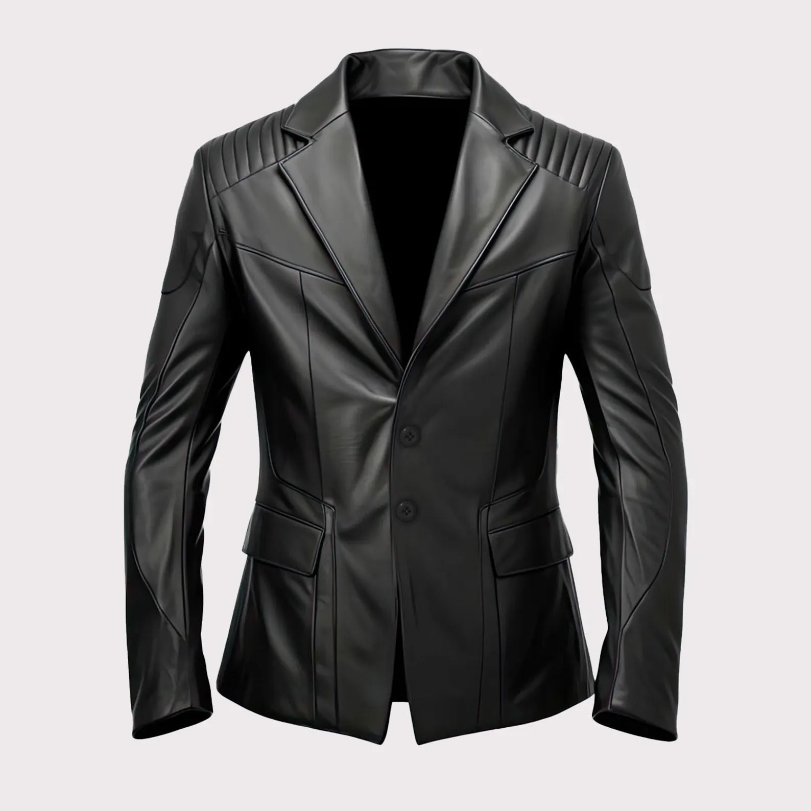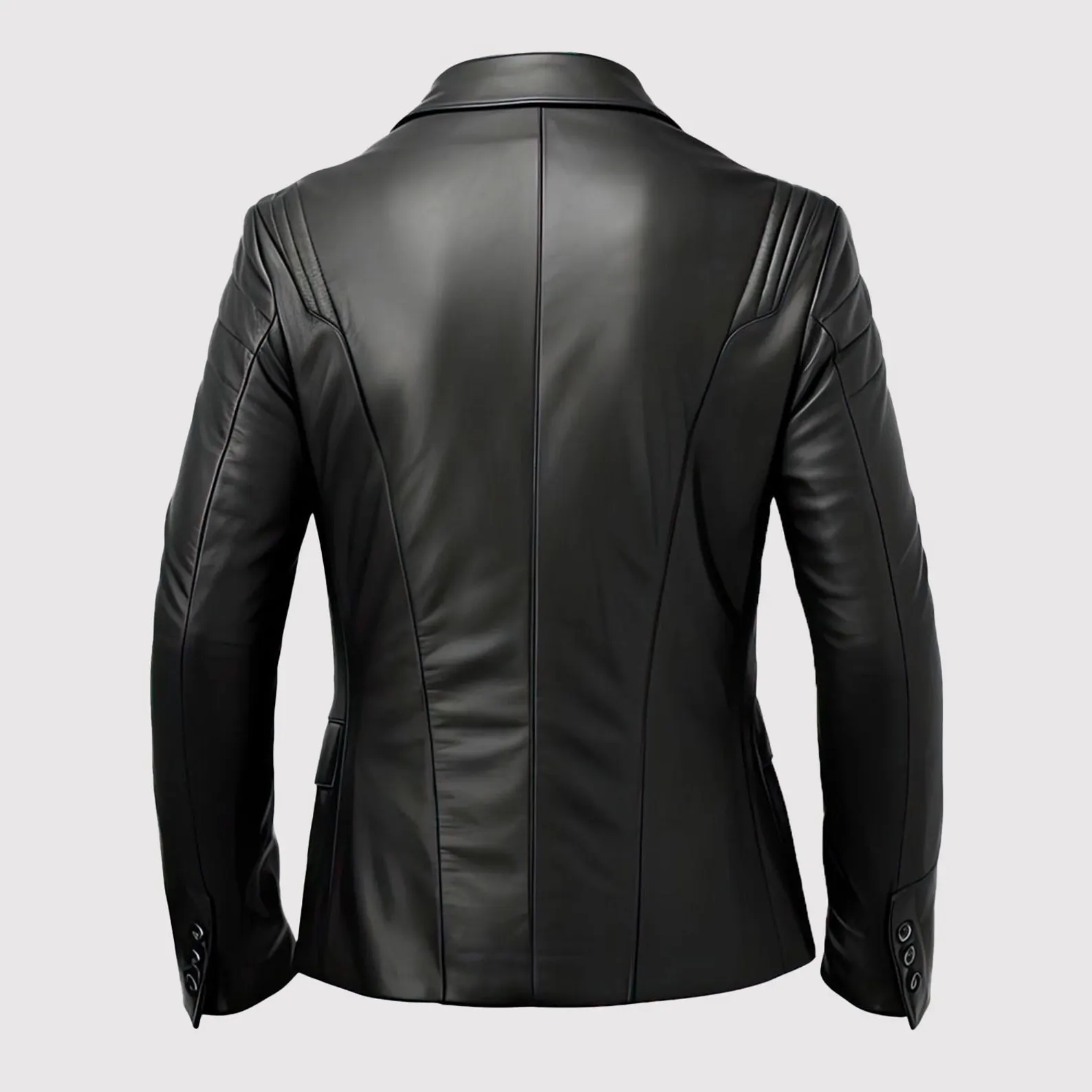 Handcrafted from genuine sheepskin leather, this men’s black blazer features a tailored fit, classic button closure, and smooth lining — a perfect blend of sophistication and modern style.