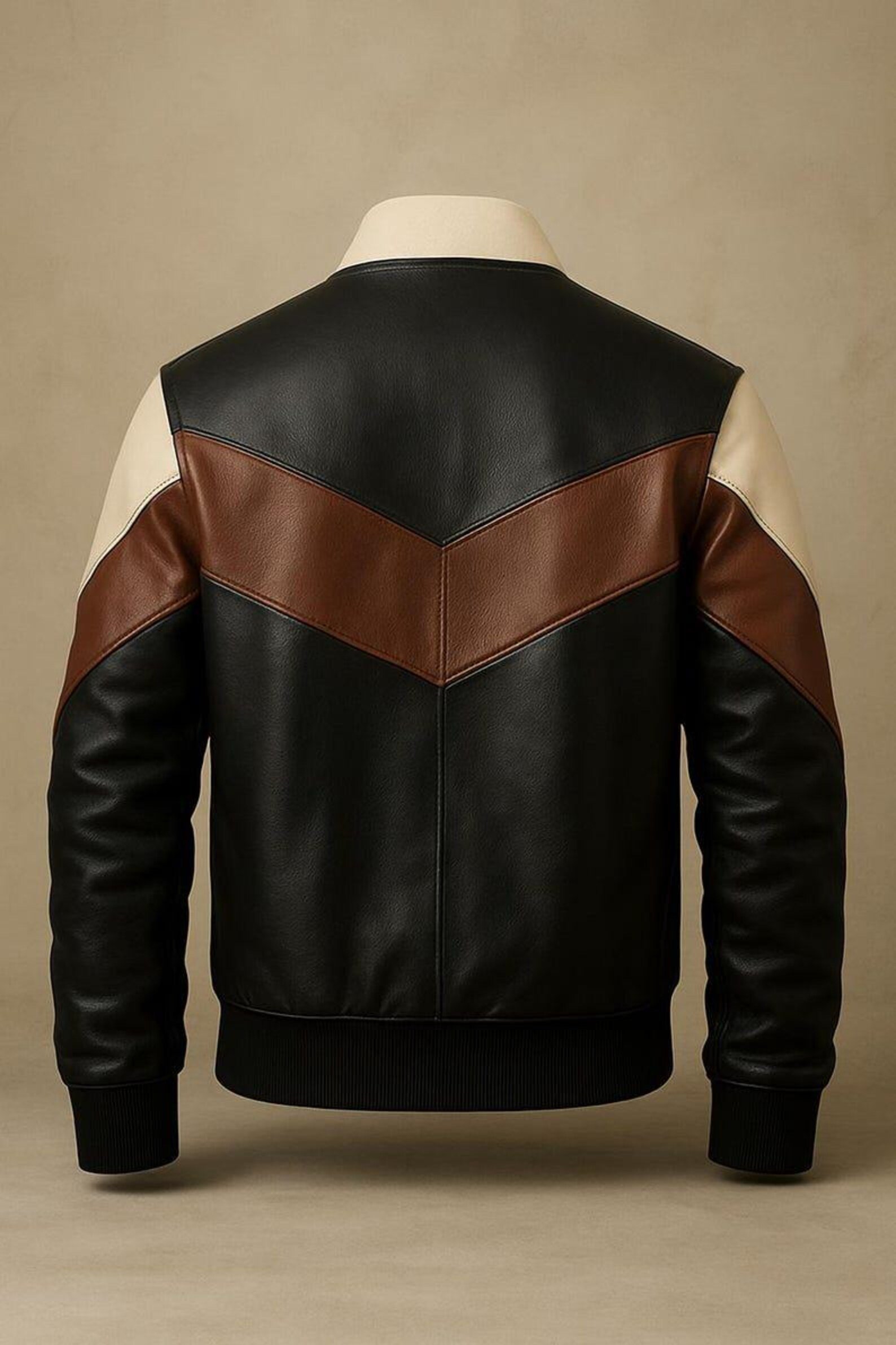 Be the first to review “Men’s Color Block Leather Jacket Black Brown & Beige Bomber Style genuine leather”