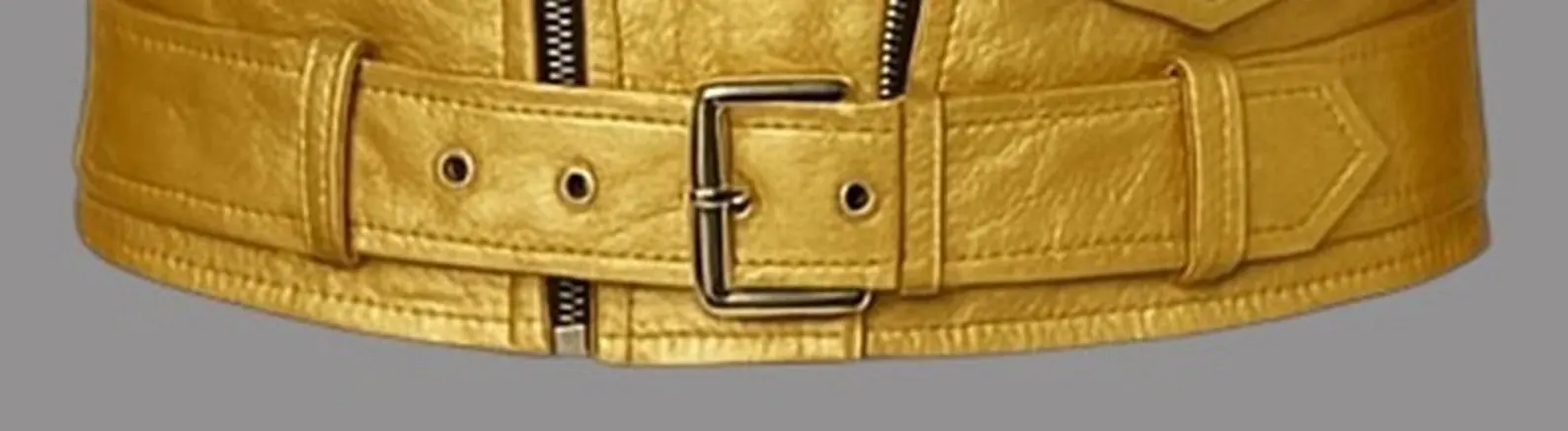 Men’s Metallic Gold Leather Biker Jacket Classic Motorcycle Style with Belted Waist