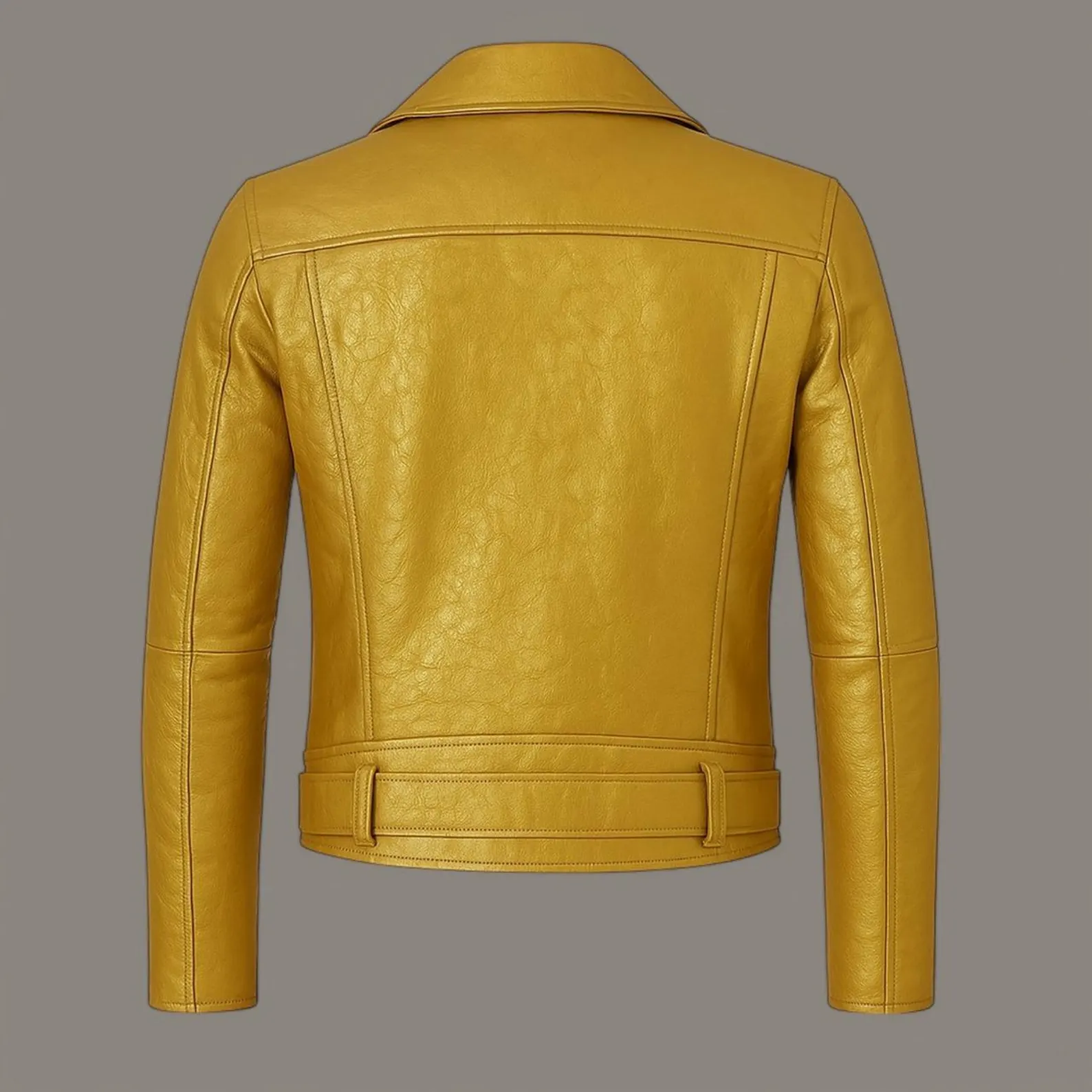 Be the first to review “Men’s Metallic Gold Leather Biker Jacket Classic Motorcycle Style with Belted Waist”