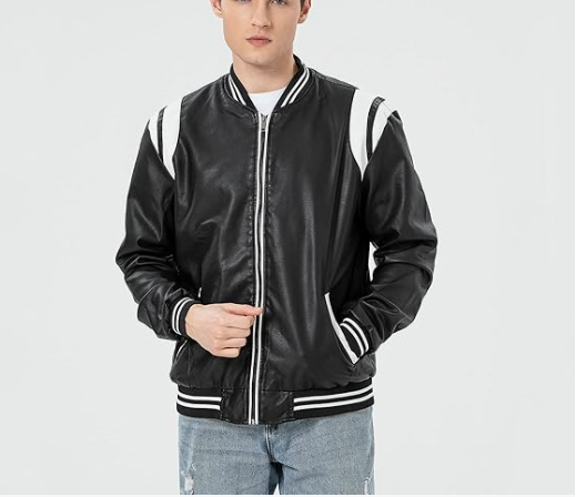 Add bold style to your wardrobe with this men’s PU faux leather motorcycle bomber jacket. Featuring a stand collar, zip-up front, and ribbed cuffs, it’s perfect for a rugged, modern look.