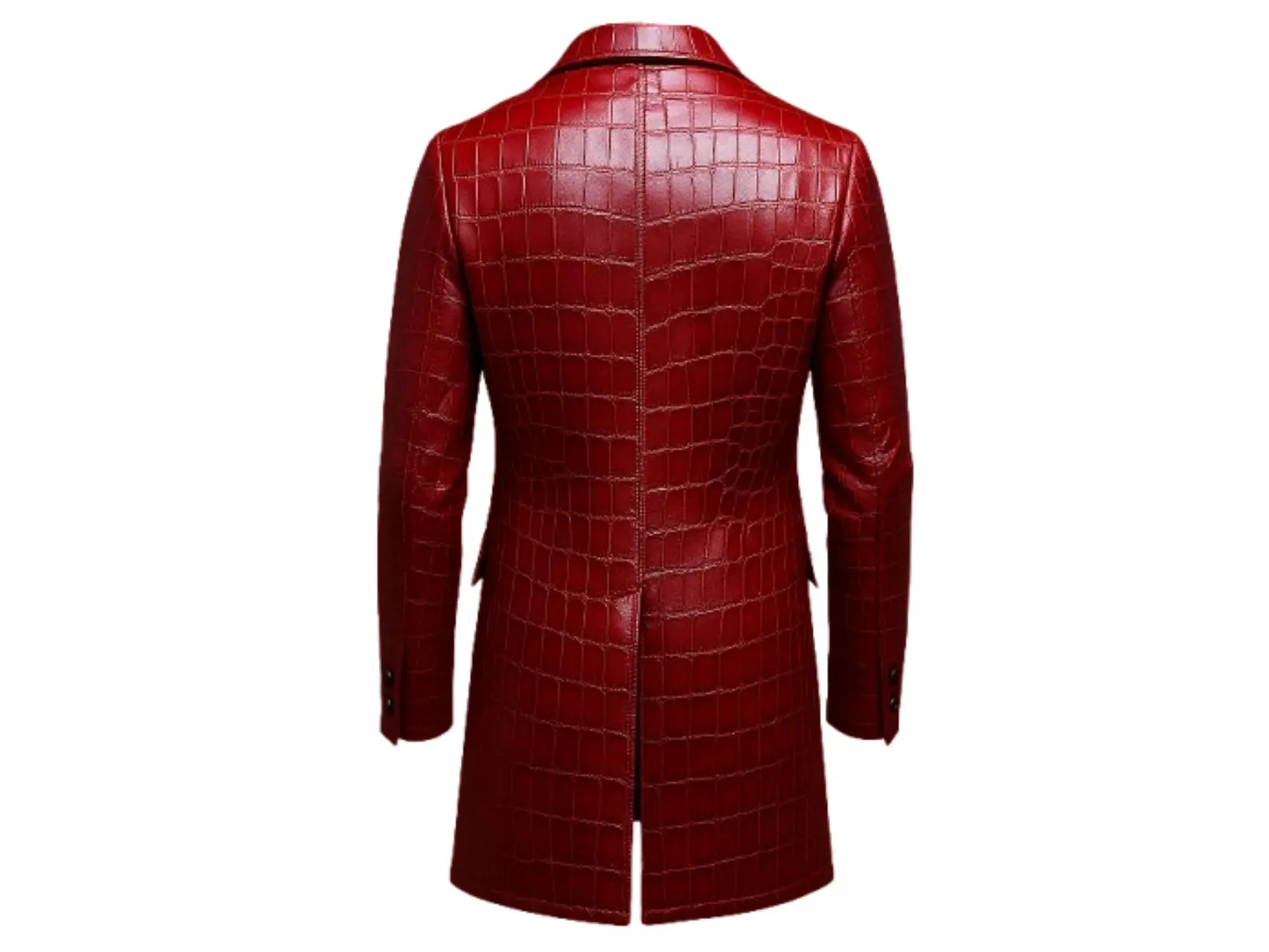 Men’s Red Crocodile Embossed Leather Blazer, a bold fusion of luxury and modern sophistication. Crafted from premium genuine leather with an exquisite crocodile-embossed texture, this blazer exudes confidence, power, and style. The vibrant red color enhances its bold character, making it a statement piece for men who value distinctive fashion.