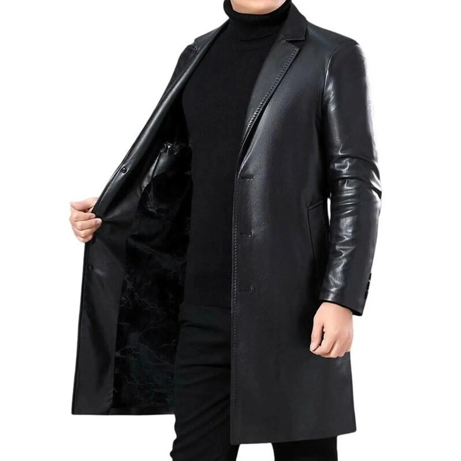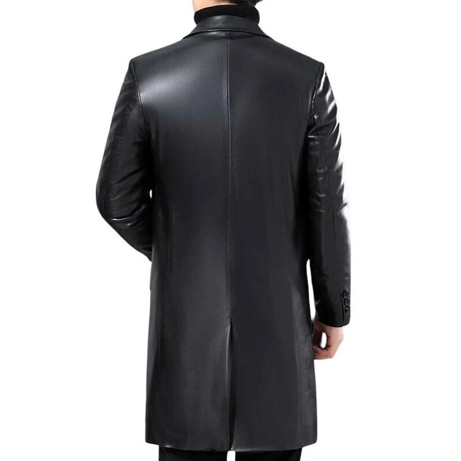 Men’s Soft Lambskin Leather Trench Coat Black Casual Style