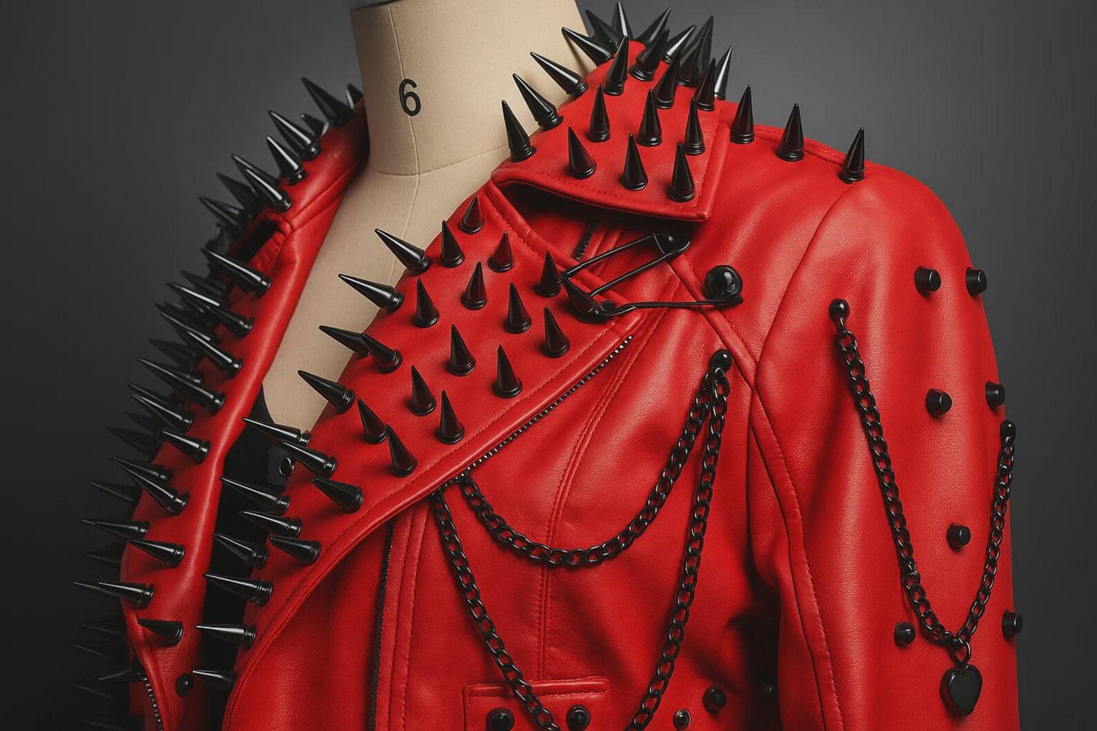 Red Spiked PU Leather Jacket for Women Punk Rock Rivet Chain Studded Jacket. Designed for the fearless and bold, this punk rock-inspired jacket features statement-making spikes, rivets, and chain embellishments that exude rebellious energy. The vibrant red hue brings out your inner rockstar, while the soft PU leather ensures durability and comfort. Perfect for concerts, night outs, or fashion-forward streetwear looks, this jacket adds instant attitude to any outfit.