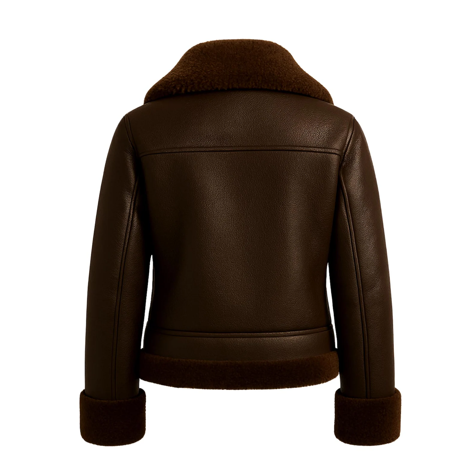 Be the first to review “Women Brown Shearling Leather Jacket Aviator Bomber Jacket”