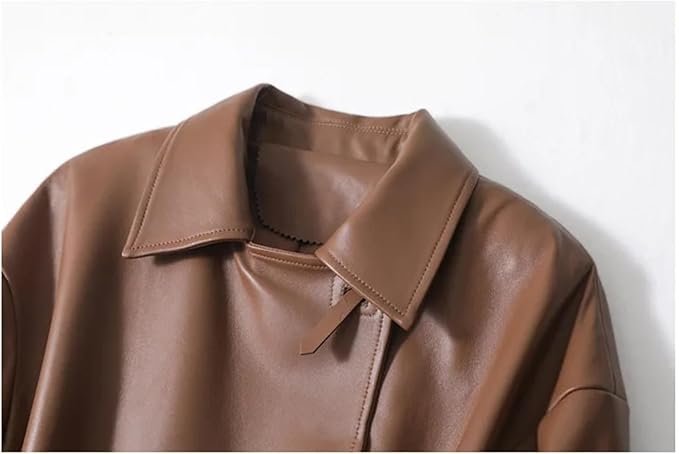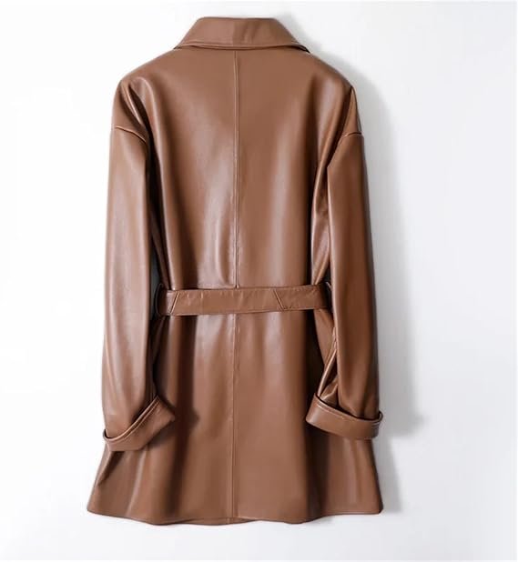 Women Genuine Leather Jackets Spring Autumn Mid Length Belt Slim Sheepskin Leather Trench Coat, crafted for spring and autumn seasons. Made from high-quality genuine sheepskin leather, it delivers a soft, luxurious feel while ensuring durability and long-lasting wear. The slim tailored fit and adjustable waist belt accentuate your silhouette, while the mid-length cut provides comfort, coverage, and versatile styling. Lightweight yet stylish, this trench coat is the perfect choice for transitional weather, making it ideal for casual outings, office wear, or evening occasions.