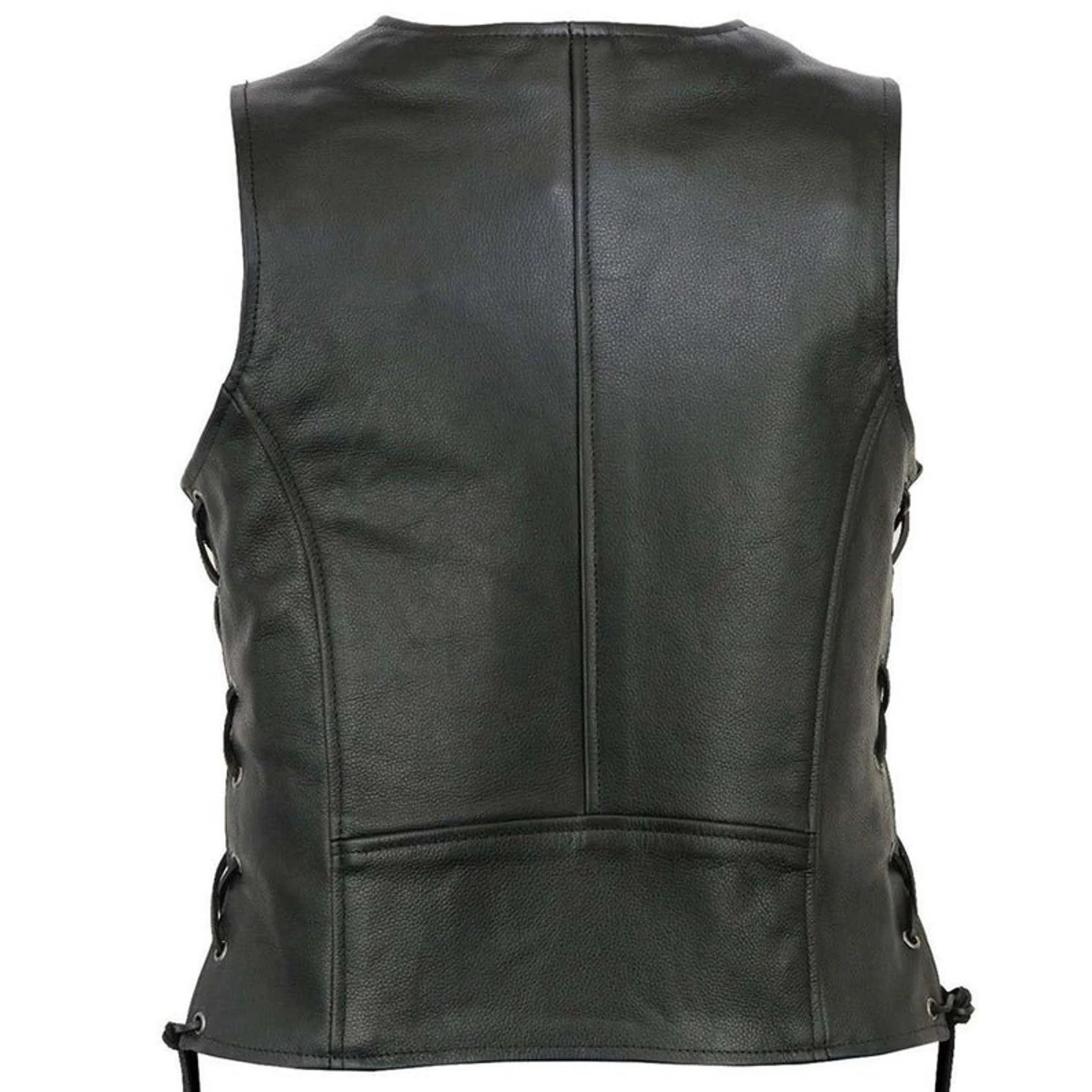 Be the first to review “Women’s Black Genuine Leather Laced Motorcycle Vest Zipper Front Biker Style”