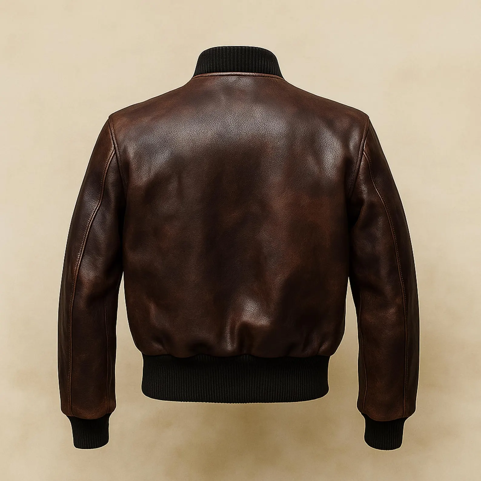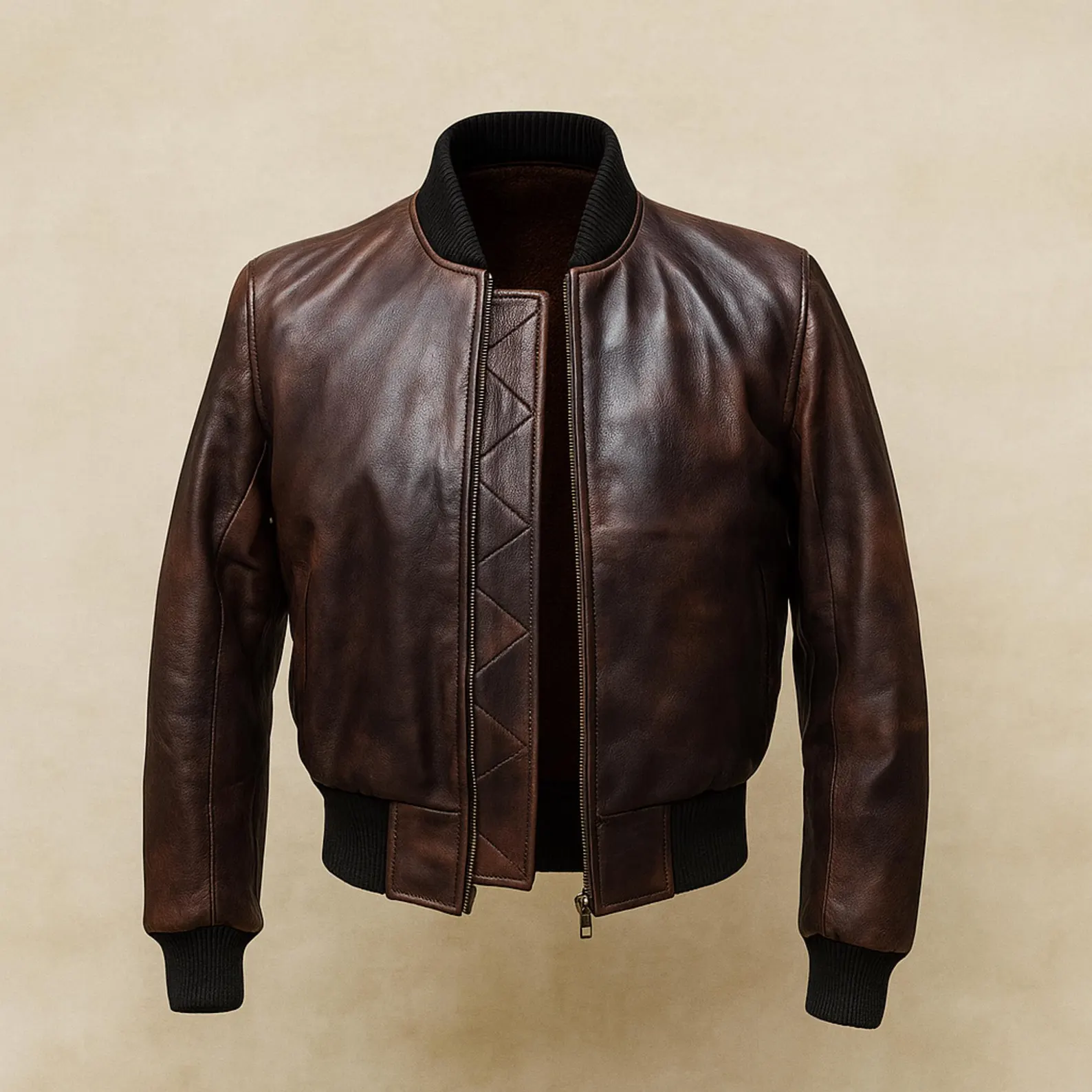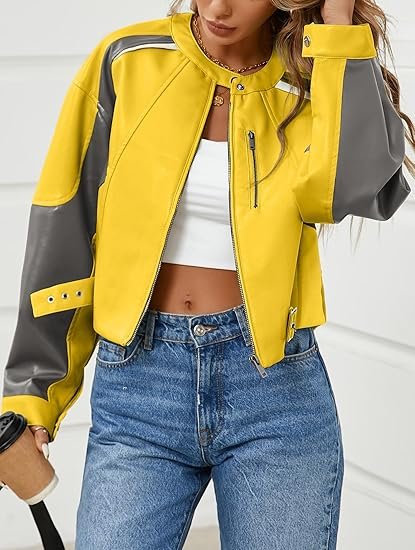 Women’s Cropped Brown Leather Bomber Jacket, featuring a sleek zip-up front, ribbed details, and a flattering cropped fit for effortless everyday style.